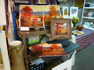 Here is a display corner. I like to keep a few empty frames and tabletop easels on hand to pop work into for display. It also helps me decide if a painting is done or needs more work. I don't bother with glass since it is just temporary.